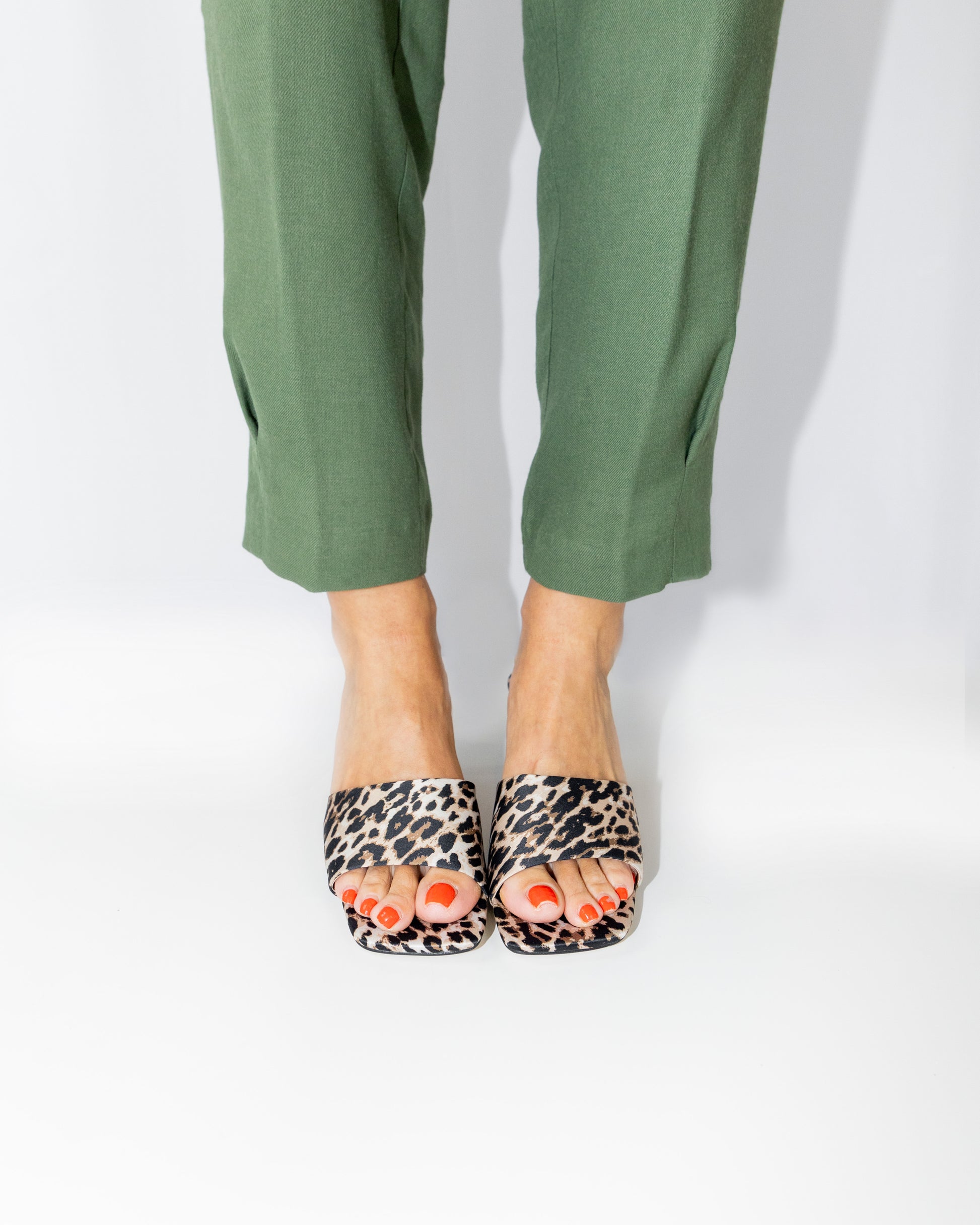 Inniu Catwalk Katy Mule Heel Leopard Satin